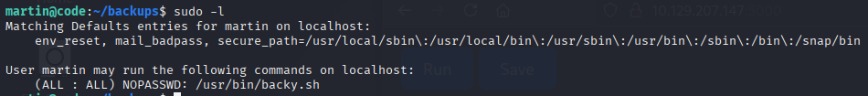 , we find that martin can run /usr/bin/backy.sh