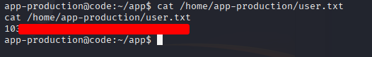We find the user flag at /home/app-production/user.txt