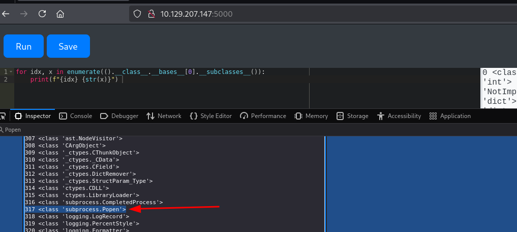 is located at index 317 in the __subclasses__()