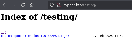 └─$ wget http://cypher.htb/testing/custom-apoc-extension-1.0-SNAPSHOT.jar